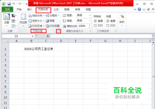 点击“页面布局”菜单栏下的“页面设置”选项卡(如图);