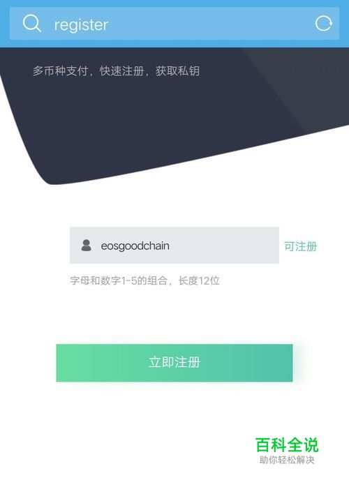 打开注册页面,输入已经想好的12位账号,账号一旦注册,不能更改,并且具有唯一性,账号可以由0-5和a-z任意组合。