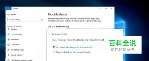 在Windows 10 系统上,这个过程很相似,但是你不会看到几个选项。 点击开始按钮并输入疑难解答。 选择疑难解答。 选择Windows Update。 点击运行问题排查工具。 选择以管理员身份尝试排除故障。 等待过程结束。 重新启动系统。