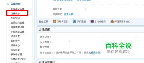 单击后页面会跳转,我们将页面下拉到如图所示,此时我们单击”店铺装修“按钮。