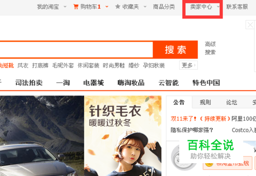 首先我们先打开淘宝的首页,打开之后登录我们的账号,然后会出现如图所示,此时我们单击页面上的“卖家中心"按钮。