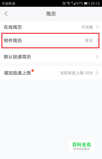 第二步进去简历界面之后,点击附件简历,如下图所示: