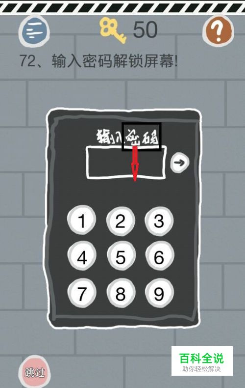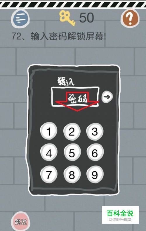 第72关:输入密码解锁屏幕,这关将上面的“密码”两字拖入方框中,点击按向右钮即可过关了。