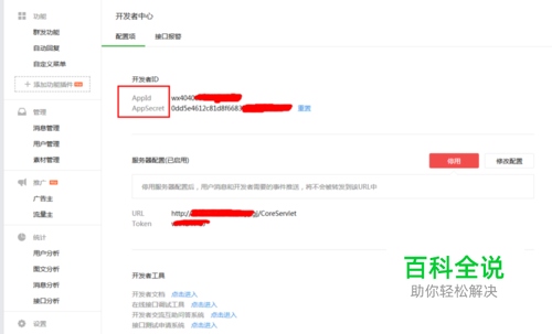 登录微信公众平台,点击左侧开发者中心,如图所示,记下AppId和AppSecret。
