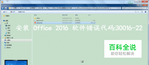 安装 Office 2016 软件,中途弹出错误代码:30016-22