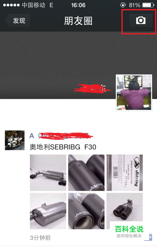 点击屏幕右上角发布朋友圈。 可以拍照或从相册选择你要发布的照片。
