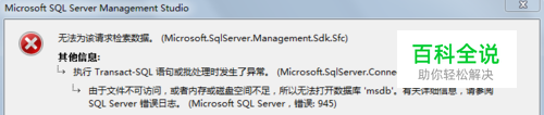 当你打开“系统数据库”或“数据库快照”时,还会出现如图的错误提示