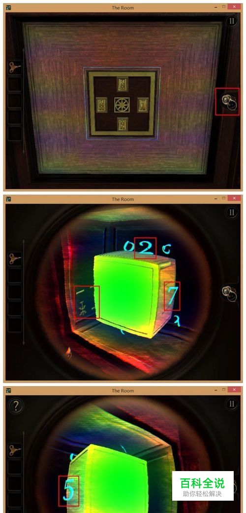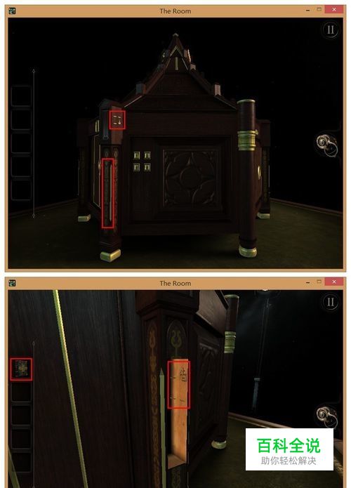 点击钥匙,旋转钥匙扣,打开机关正前方的钥匙孔,获取小旋钮。江小旋钮安装在齿轮面的钥匙孔中,第二个机关打开: