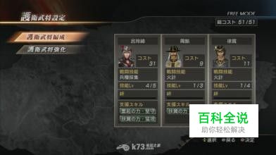 如果统率力到了最高值99,随便带哪三个武将都能当做护卫武将上场。