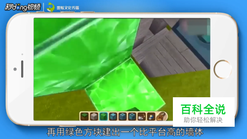 使用绿色方块建造一个比平台高的墙体。