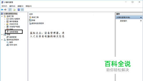 步骤二:在管理界面找到→设备管理器点击进入,之后在右边的界面上可以查看电脑的配置的一些相关信息,操作如图所示。