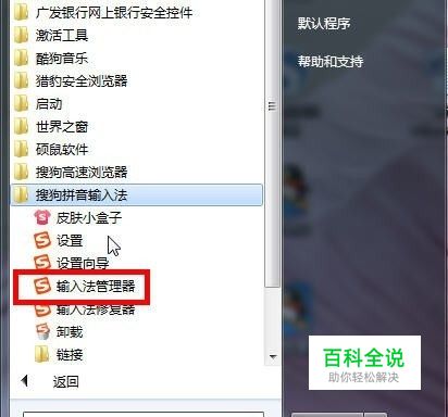 在开始菜单中,找到搜狗输入法的安装程序,如图,打开输入法管理器