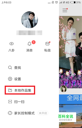 在更多选项界面中可以看到一个【本地作品集】的选项,草稿箱视频就保存在这里,点击打开该选项。