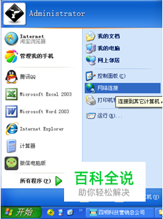 XP系统静态IP地址输入方法 1.点击电脑屏幕左下角“开始”,鼠标移动到“网络连接”