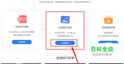 在网页中搜索在线图片压缩,找到并打开这个在线压缩的网站,点击页面中的在线图片压缩就可以进入到操作界面中。