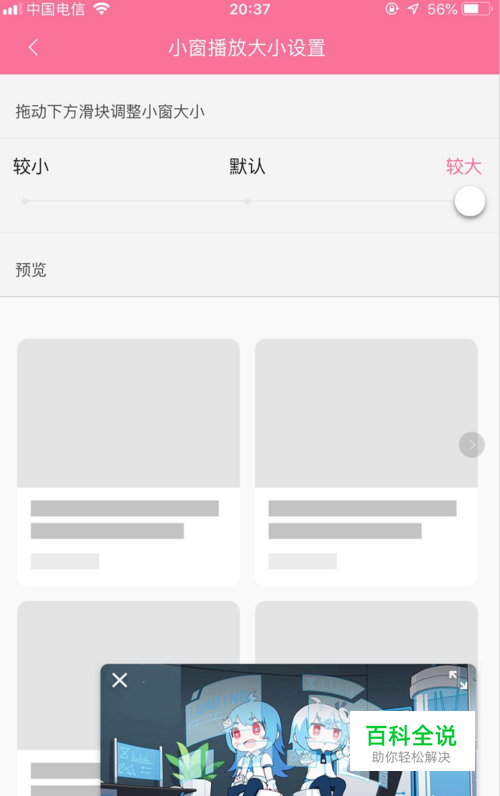 小窗播放尺寸有【较小】、【默认】、【较大】三种规格,根据自己的喜好滑动滑块进行调整即可!