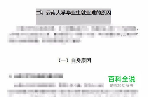 首先打开软件wps,选中标题如图中“云南大学生就业难之现状”......直到选完最后一个标题 。