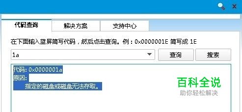 使用蓝屏查询器,输入蓝屏简码:1a 经查,这个蓝屏出错代码的缘由是: 代码: 0x0000001a 原因: 指定的磁盘或磁盘无法存取。