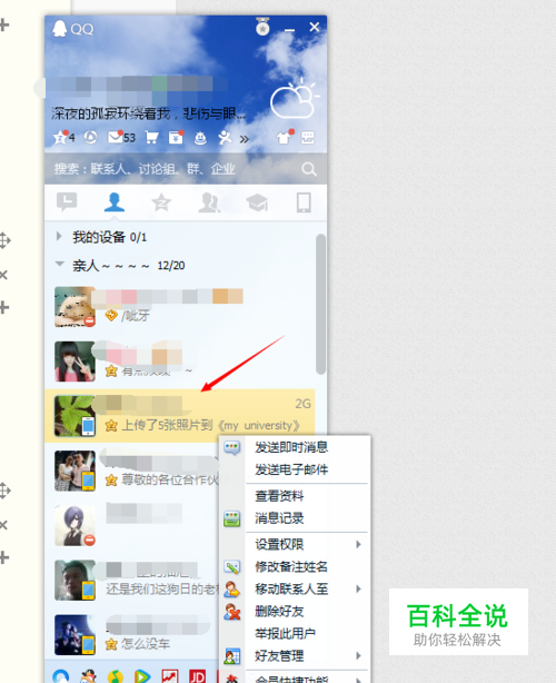 登陆完成之后找到某一个联系人,点击鼠标右键,你就可以看到如图所示