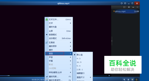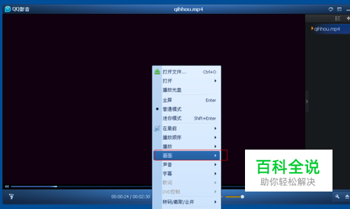 用qq影音打开视频,鼠标移动到视频画面上方,点击鼠标右键,选择【画面】
