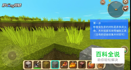 检查背包里的材料是否有泥土块,木材或岩石块等辅助工具。