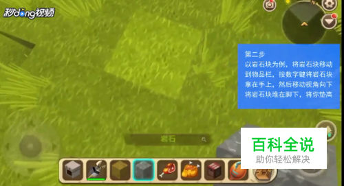 以岩石块为例,将岩石块移动到物品栏,按数字键将岩石块拿在手上。