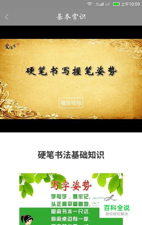 课程1、“书写基本常识”: 练得一手正确、清楚、流畅、美观的好字,对工作和学习很有益处。大家都要从书写的基本常识学起,对于打算练习书写的朋友们更要掌握这些基础知识,指导你在练字之路迈出正确的第一步。 进入课程中的“书写基本常识”,从硬笔书法写字姿势讲解,到书写用笔的选择、初学者选择字体、练字时长规划,内附名师视频讲解更加直观。为准备练字的你做一个正确的开始,练字路上不走弯路!