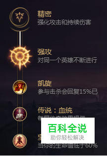 主符文系依次为:精密,强攻,凯旋,传说:血统,坚毅不倒