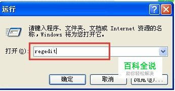 既然没有权限,那么我们需要给当前用户授予权限。首先,点击开始按钮,选中“运行”框,然后输入 regedit,打开注册表编辑器