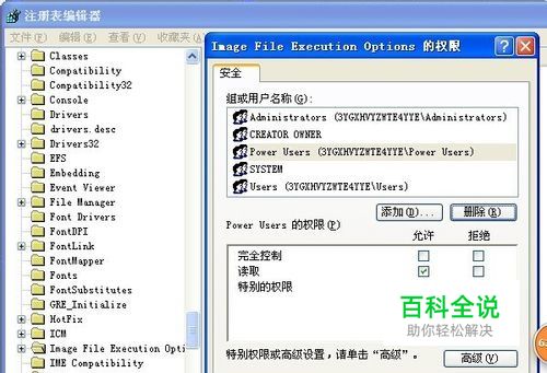 右键点击Image File Execution Options,在选中菜单中点击“权限”选项,跳转到权限维护菜单
