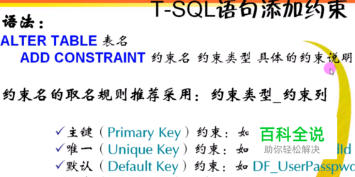 Sqlserver之通过Sql语句添加约束