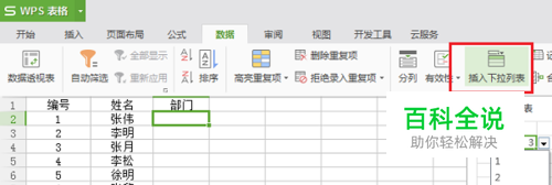 第二步点击数据之后,选择下方的“插入下拉列表”,如下图所示: