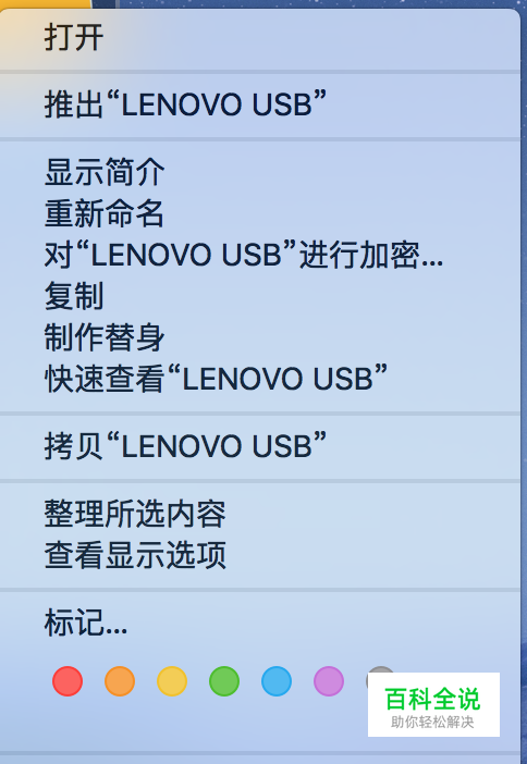 打开Mac电脑,通过USB连上移动硬盘,可以看到桌面上出现了一个盘符的图标,点击右键 此时是没有复制 这个选项的 说明我们的移动硬盘默认是Windows系统下的格式 Mac系统下目前是 read-only(只读)的