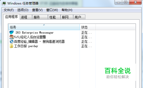 其实,现在只要将程序彻底关闭,将占用的内存释放即可。但是任务管理器中的“应用程序”是无法实现的,需要到进程中关闭;