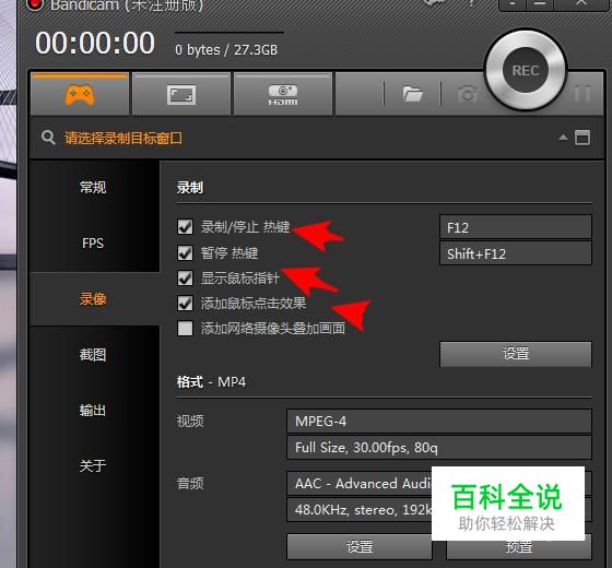 录像中的一下操作都勾选,比如录制快捷键、暂停键等。