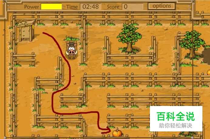 打开在线游戏‘’野猪逃离迷宫‘’游戏的主页面。首先让野猪往右下角去吃掉最近的食物。