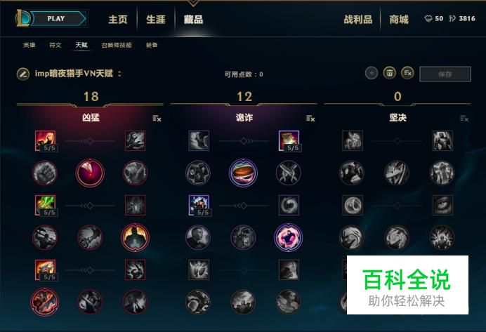 对于天赋的选择小编用的是这一套,凶猛12,诡诈18,点出了战争领主的嗜血,能够帮助薇恩更好的进行线上消耗。