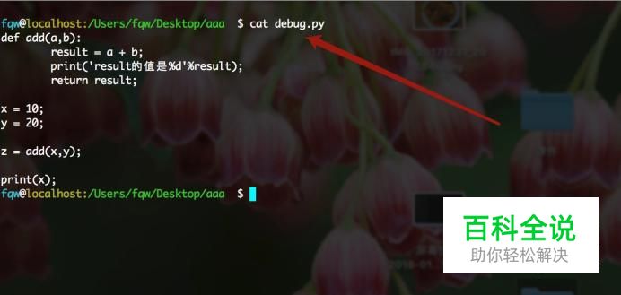 首先打开电脑后,打开终端,我这里以调试debug.py文件做说明,简单介绍python的pdb调试。为了演示,先用cat命令查看一下debug.py的内容。