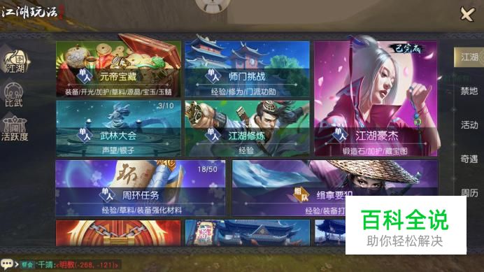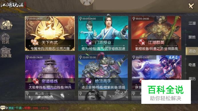 进入游戏江湖界面,在右侧选项中点击“活动”