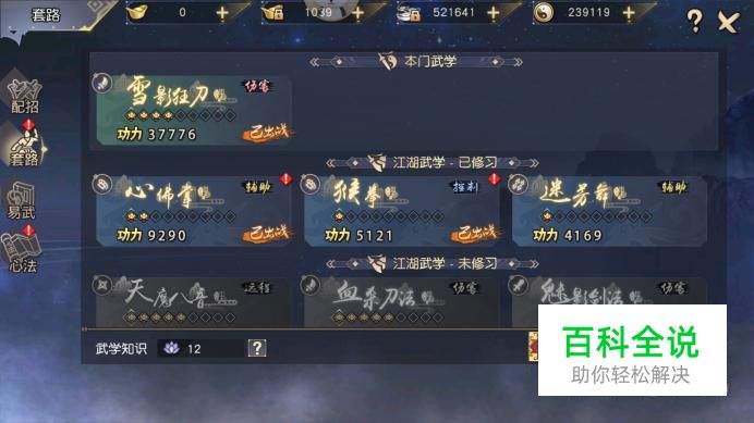 在列表中我们可查看当前已选择修炼的武学和内功,还能查看修炼所需时间。