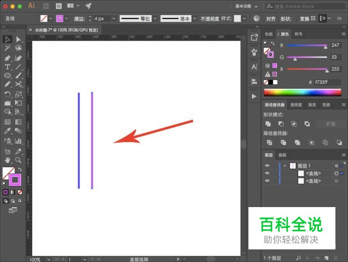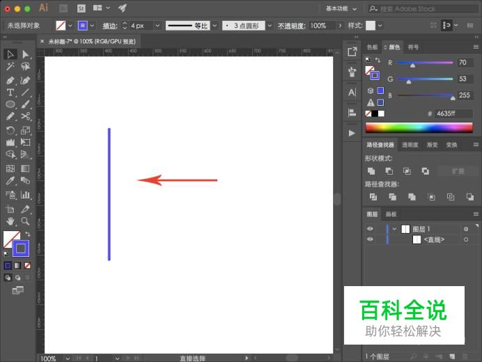 进入AI界面,我们先在工具栏中选择“直线工具”,然后在画板中绘制一根直线。