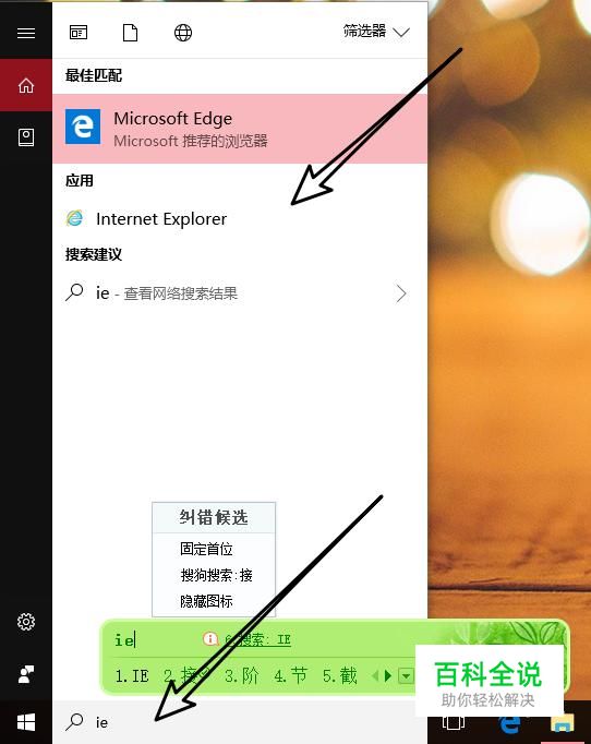 在左下角的搜索栏中搜索IE,打开IE流浪器