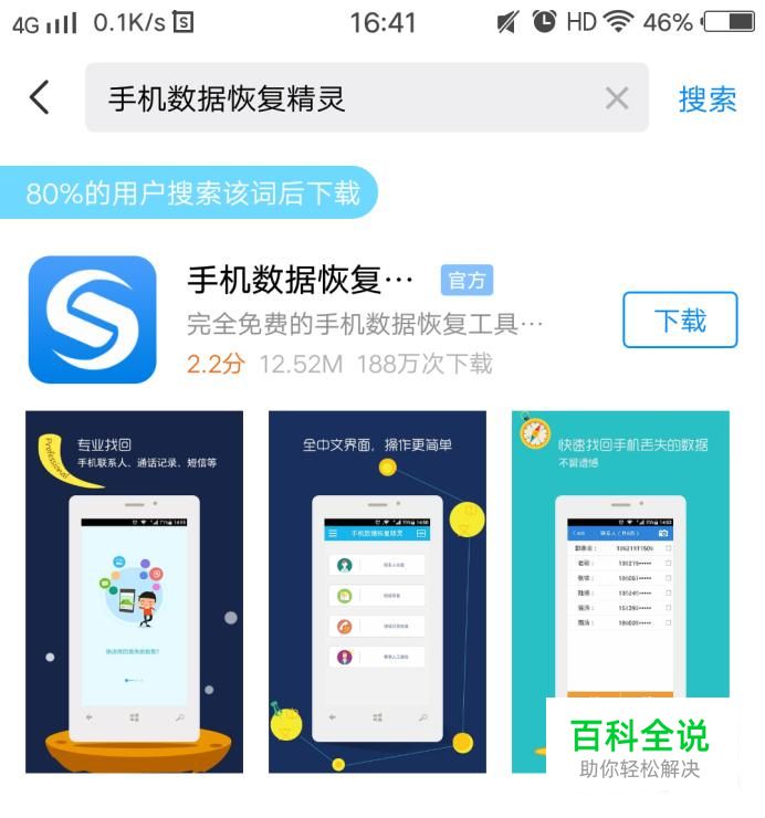 我们首先是将手机数据恢复精灵这个应用装到手机里,我们可以通过手机浏览器或者手机应用商店进行搜索下载