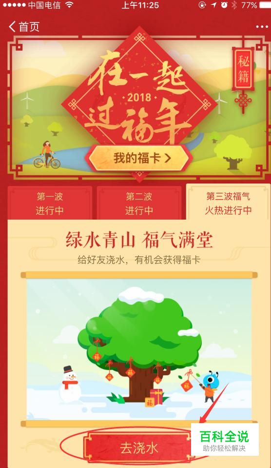 支付宝集福卡第三波,此波福利只需给好友浇水即可获得。 点击下方图标-“去浇水”。