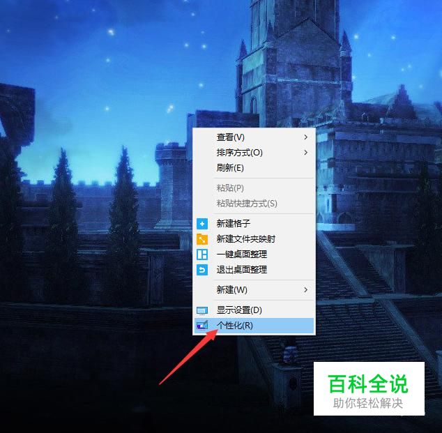 首先,我们在桌面的任意空白处,点击鼠标右键,选择“个性化”;
