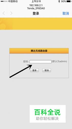 因为腾达无线路由器还没联网,使用我们的手机会直接弹出路由器登录界面,我们输入 admin(初始密码)登录无线路由器
