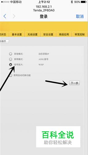 扫描出来之后,我们选择主路由器的无线网络,并且输入它的无线密码后,点击 下一步