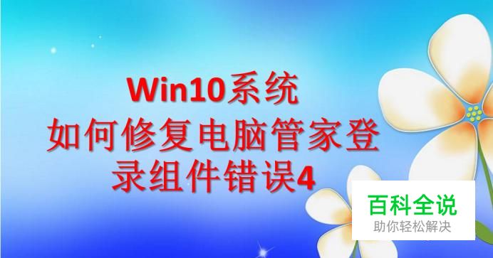 win 10在登录系统的时候,出现电脑管家登录组件错误4,是因为电脑管家的源文件损坏导致的,修复解决方法:关闭电脑管家开机自启,删除电脑管家注册表文件,卸载损坏的电脑管家重装。