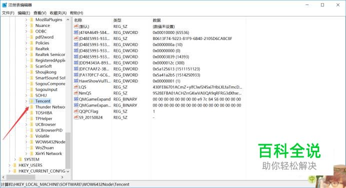 在注册表里依次展开:HKEY_LOCAL_MACHINE\SOFTWARE\Wow6432Node\Tencent,点击打开Tencent文件夹。