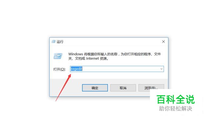 按住键盘上的windows键+R键,调出运行,在运行里输入:regedit,回车,打开注册表。